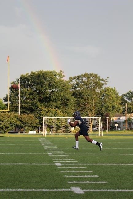 Play-action passes are a high-impact strategy that exploits defensive aggression. By mimicking a handoff to a running back, the quarterback deceives defenders into committing to the run, creating open receivers downfield. These plays are particularly effective in early downs or short-yardage situations, where defenses anticipate a run. The key to success lies in the fake handoff and the offensive line’s ability to sell the run. Play-action passes often target deep zones, leading to big plays. Proper execution, including the quarterback’s ability to maintain the illusion, is crucial for maximizing their effectiveness and keeping defenses guessing. They are a cornerstone of balanced offenses, enhancing overall versatility.